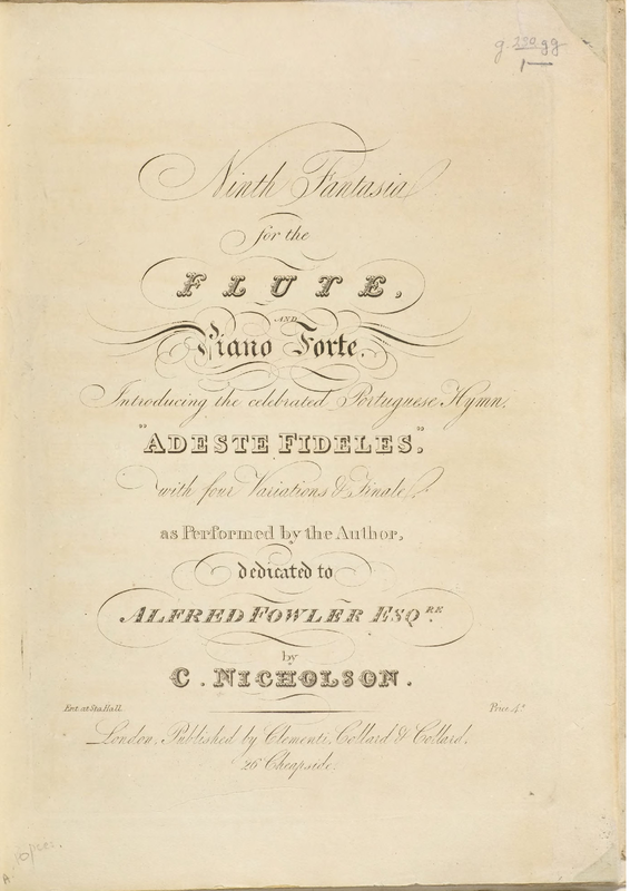 Ninth Fantasia for the Flute, and Piano Forte, introducing the celebrated Portuguese Hymn "Adeste Fideles", with four Variations & Finale, as performed by the author