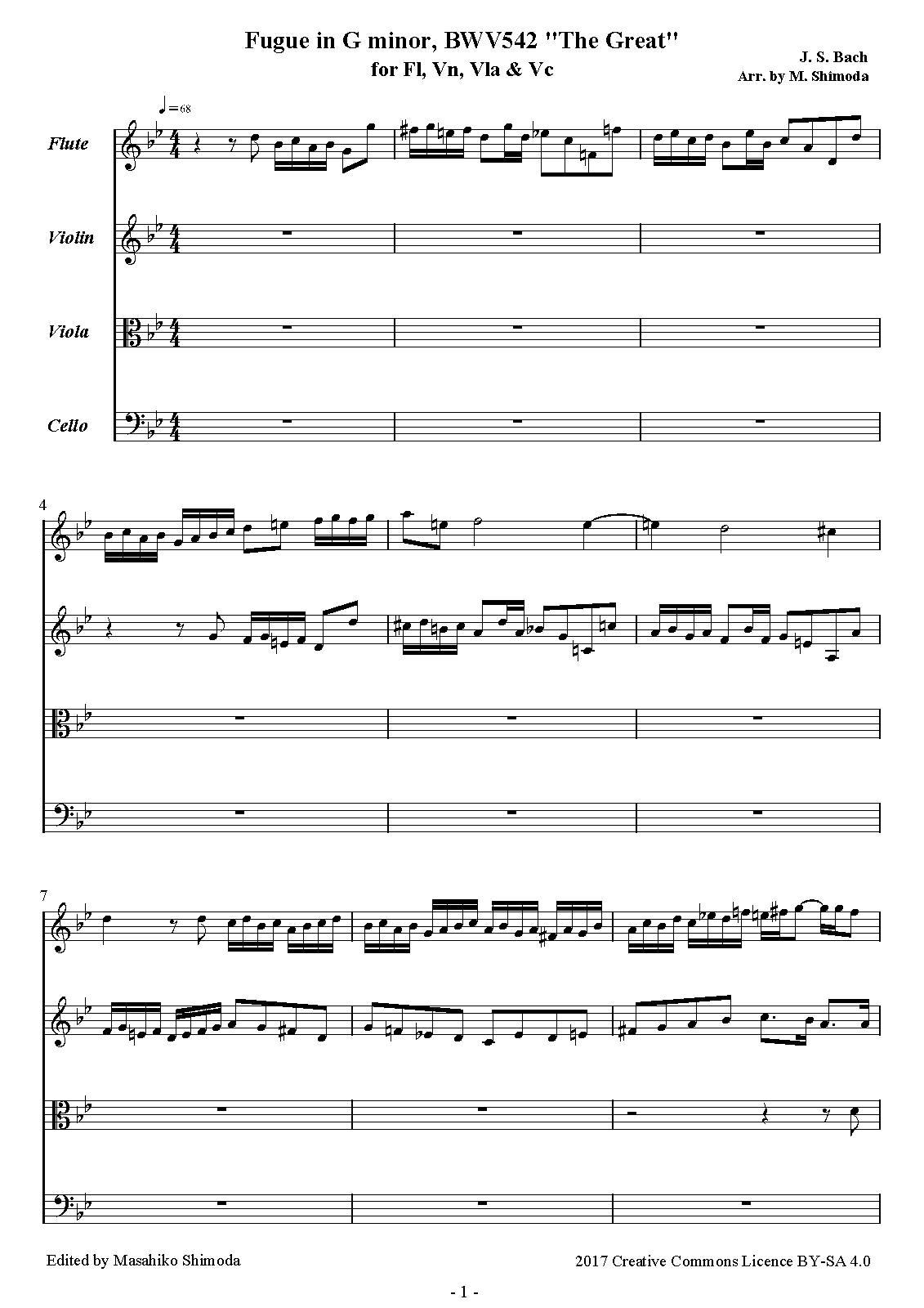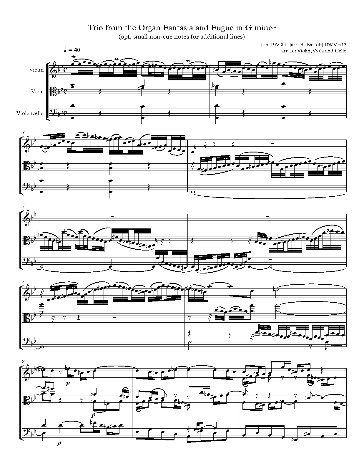 Only the Fugue parts in A min. (the Fantasia doesn't really work for strings and is only for the very brave) )