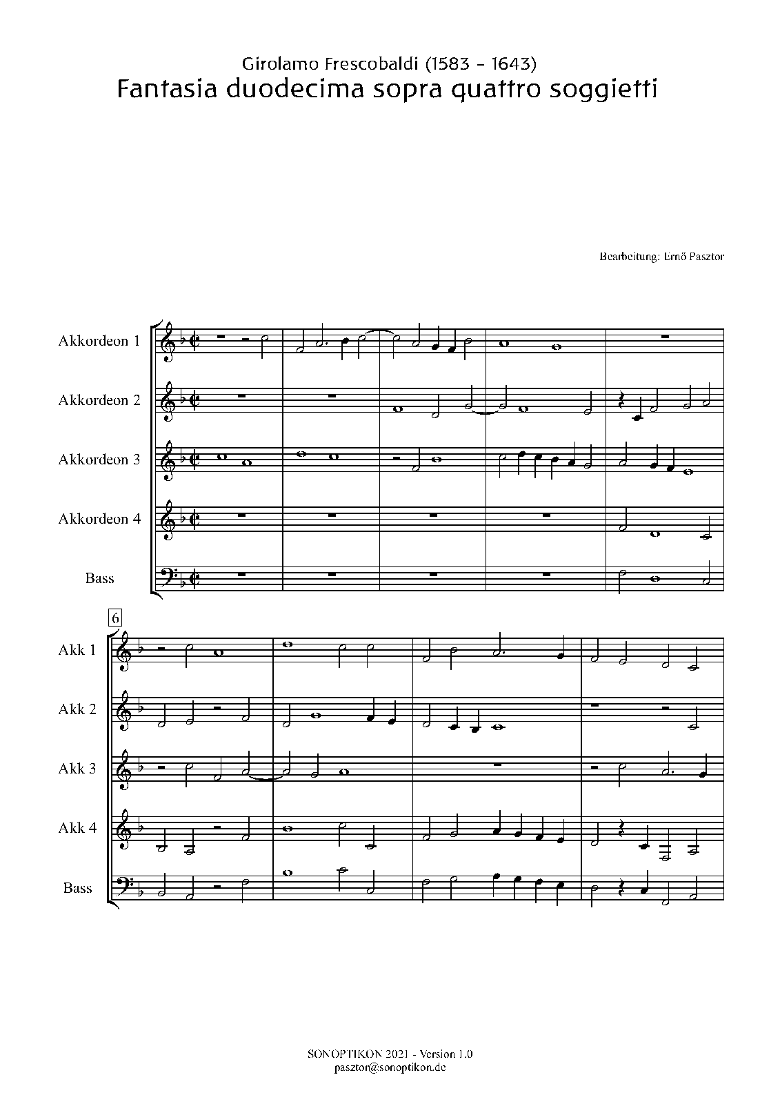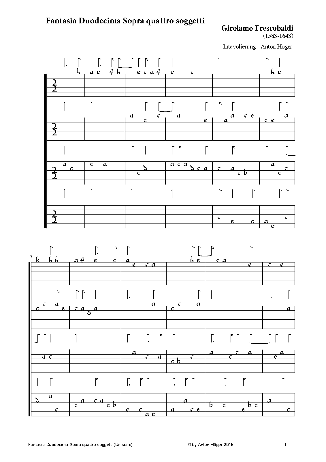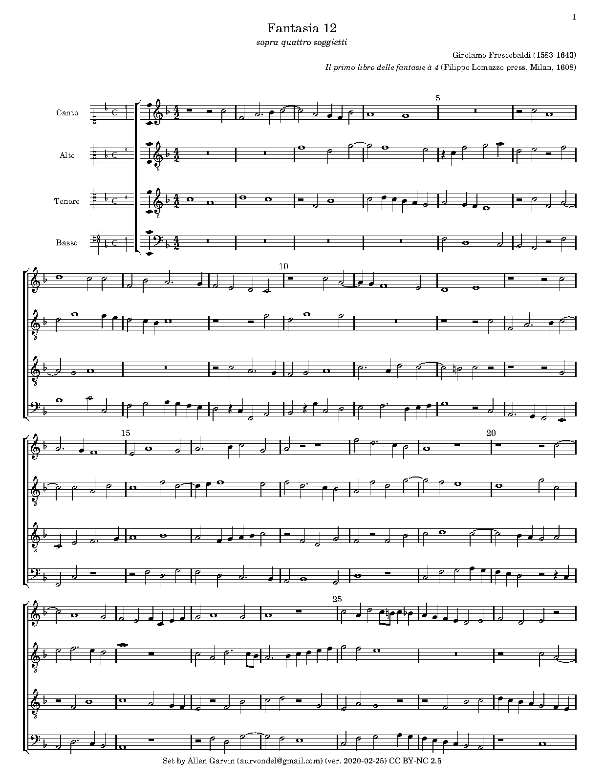 "The Fantasie were published in four-staff partitura. Like some other north Italian keyboard sources, including Adriano Banchieri's L'organo suonarino published in several editions from 1605 to 1638 (but unlike all of Frescobaldi's other collections in open score)". More infos on this Fantasia and the whole book by FREDERICK HAMMOND Bard College (1997)
