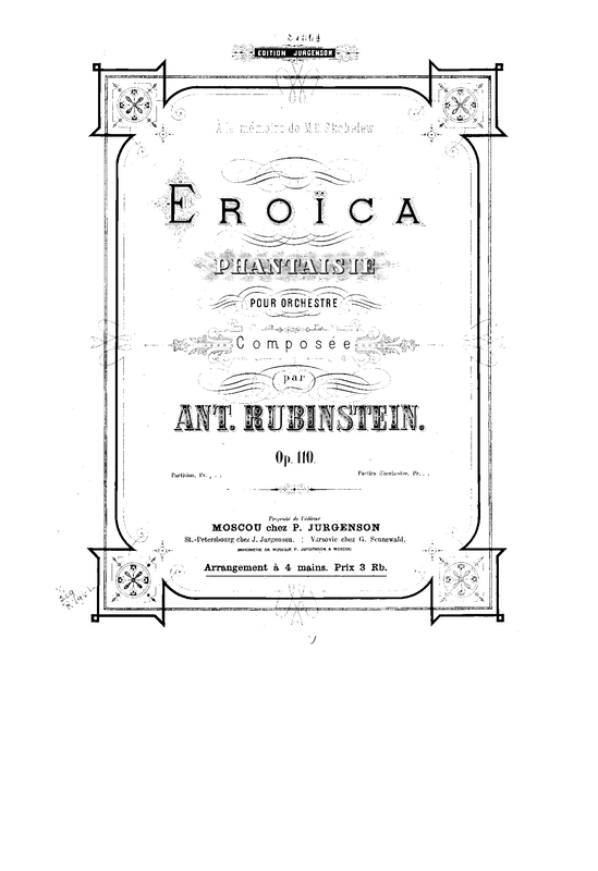 Interesting that Jurgenson would issue its arrangement at the same time that Senff issued that score, parts, and an arrangement of its own (by Kleinmichel)... but Taylor mentions several other works by Rubinstein published by both Jurgenson and Senff, so not incredible.