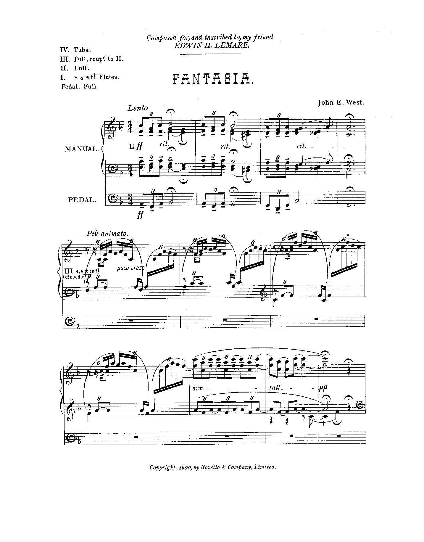 | Dedication | Composed for, and inscribed to, my friend Edwin H. Lemare |