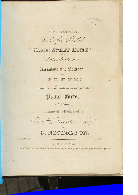 Fantasia on the favorite Ballad "Home! Sweet Home!" with an Introduction, Variations and Polacca for the Flute; and an Accompaniment for the Piano Forte ad libitum