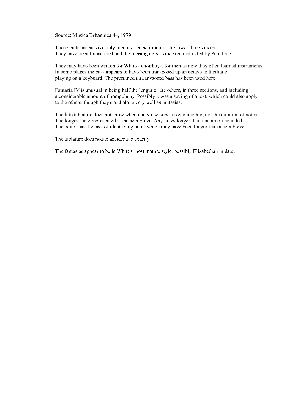 | Genre Categories | Fantasias; For treble, alto, tenor, bass instruments; Scores with open instrumentation; For 4 players |