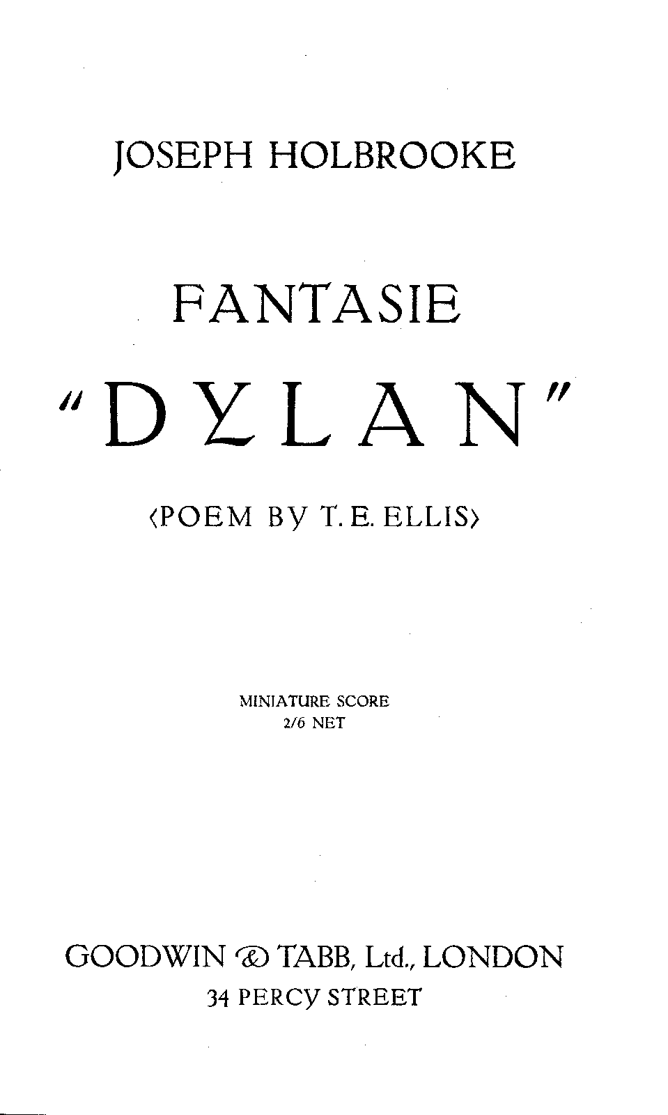 Dylan is the second opera in Holbrooke's trilogy The Cauldron of Annwn.