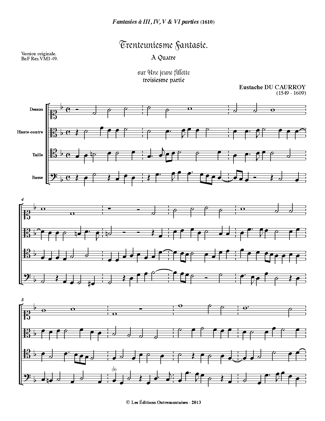 | First Publication. | 1610 in Fantasies a 3, 4, 5 et 6 parties (No.31) |