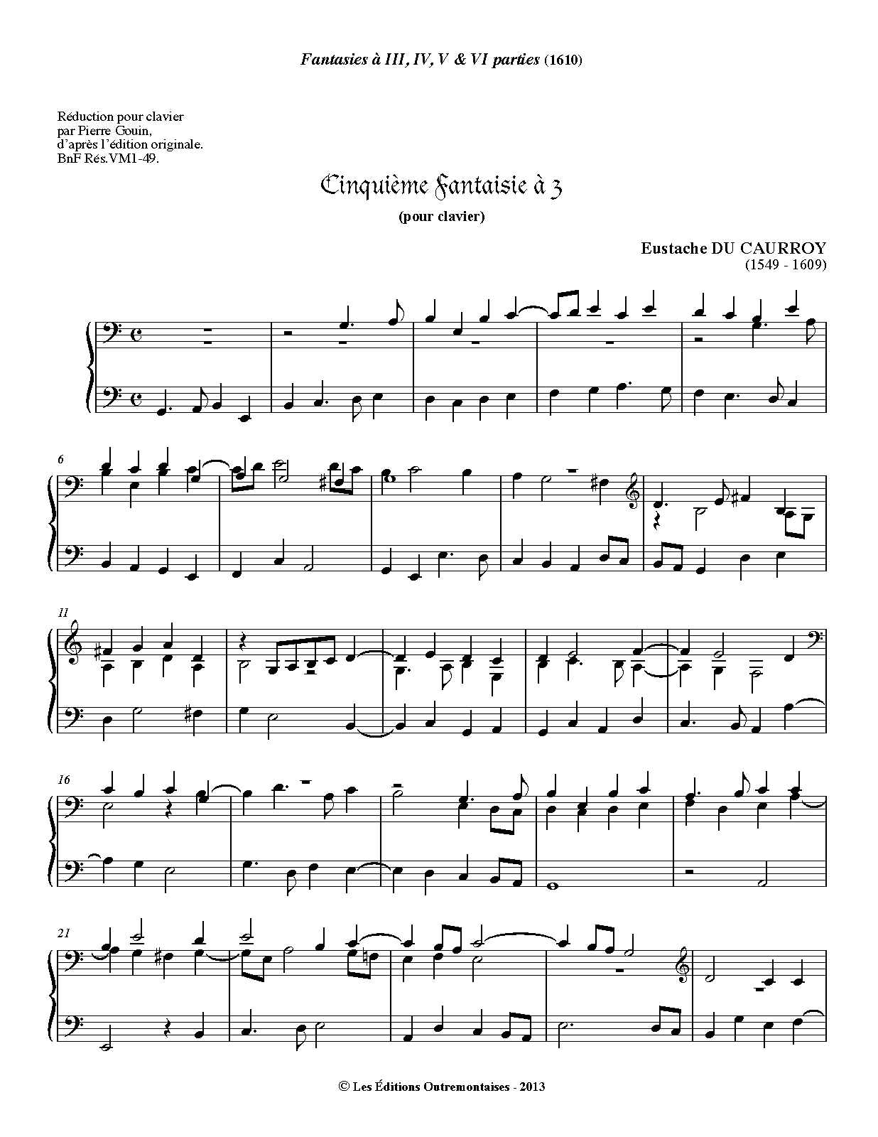 | First Publication. | 1610 in Fantasies a 3, 4, 5 et 6 parties (No.5) |