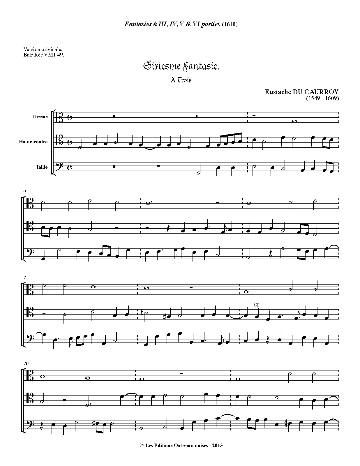 | First Publication. | 1610 in Fantasies a 3, 4, 5 et 6 parties (No.6) |
