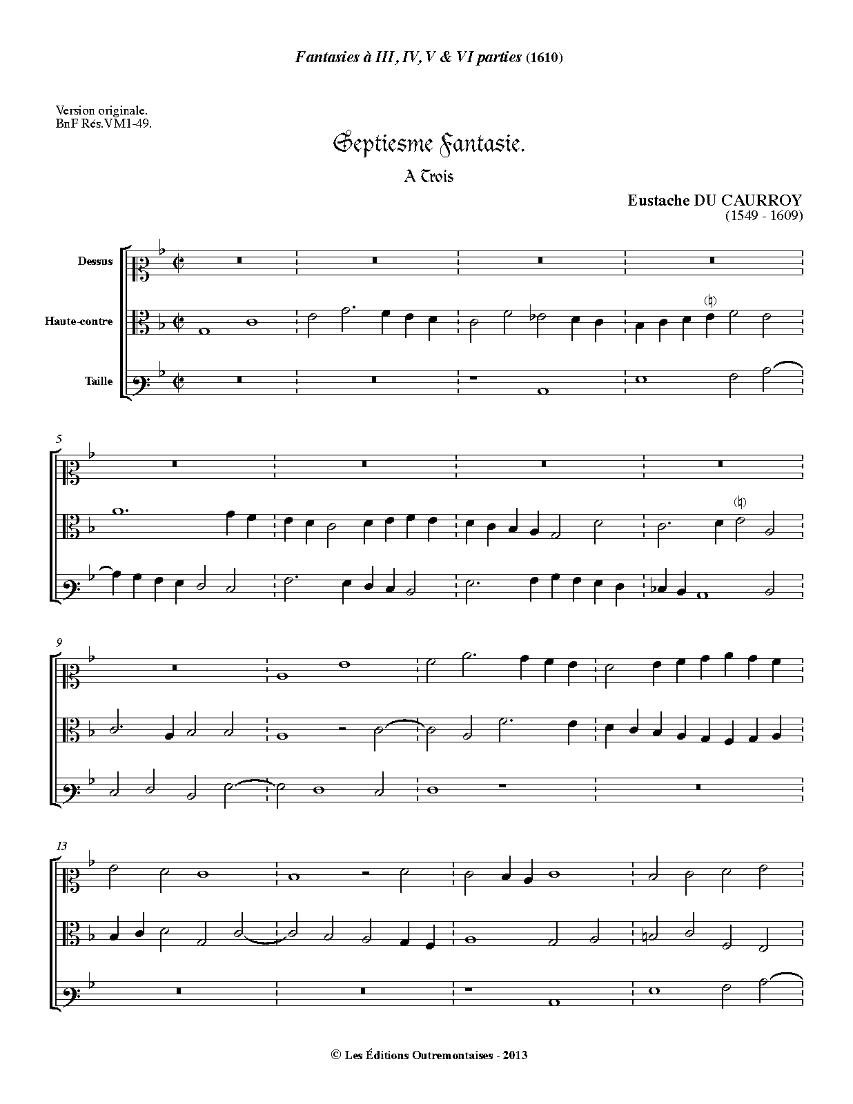 | First Publication. | 1610 in Fantasies a 3, 4, 5 et 6 parties (No.7) |
