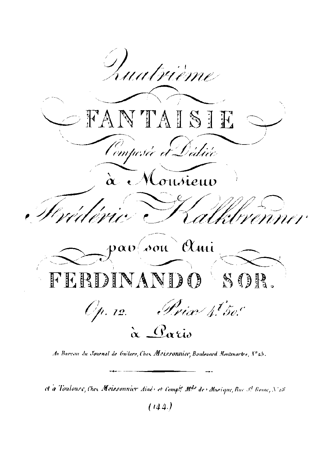 | Dedication | à Monsieur Frédéric Kalkbrenner (Friedrich Wilhelm Kalkbrenner) par son ami |