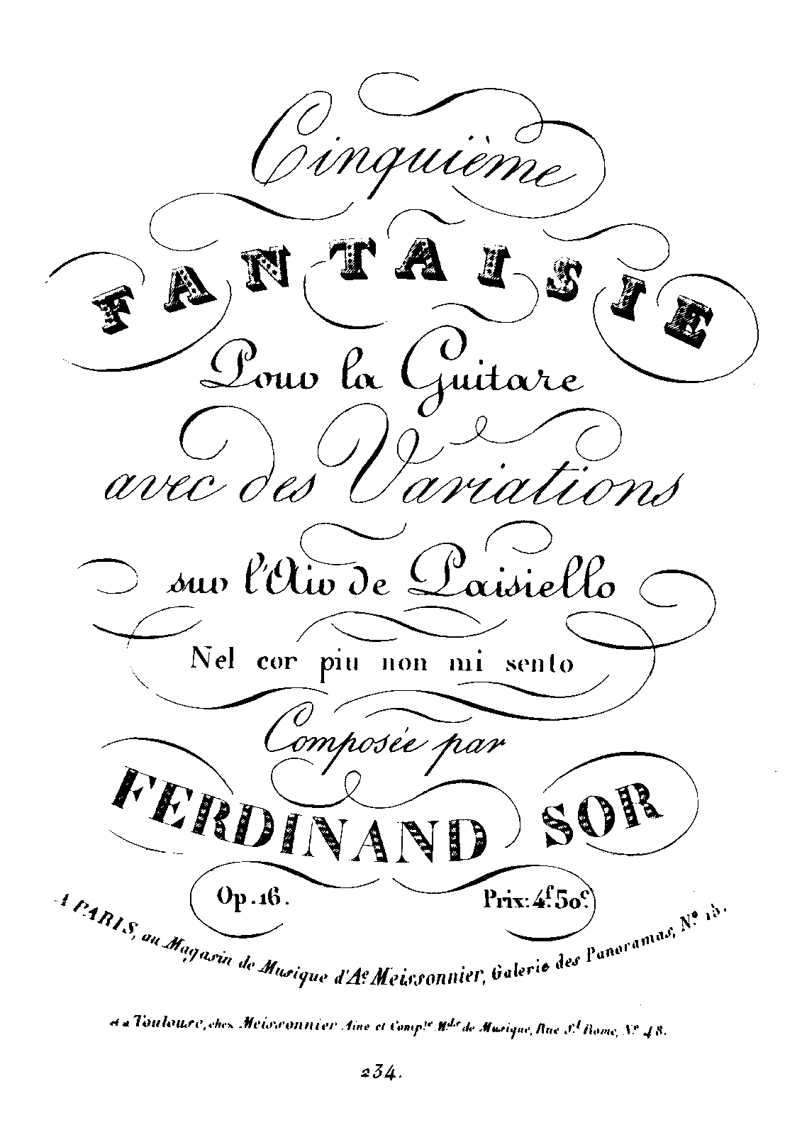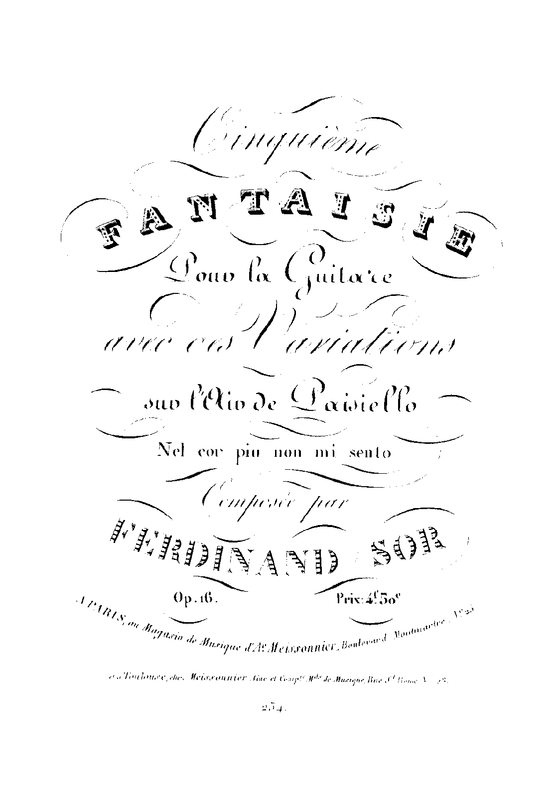 | Work Title | Cinquième fantaisie pour la guitare avec des variations sur l'air de Paisiello "Nel cor piu mi sento" |