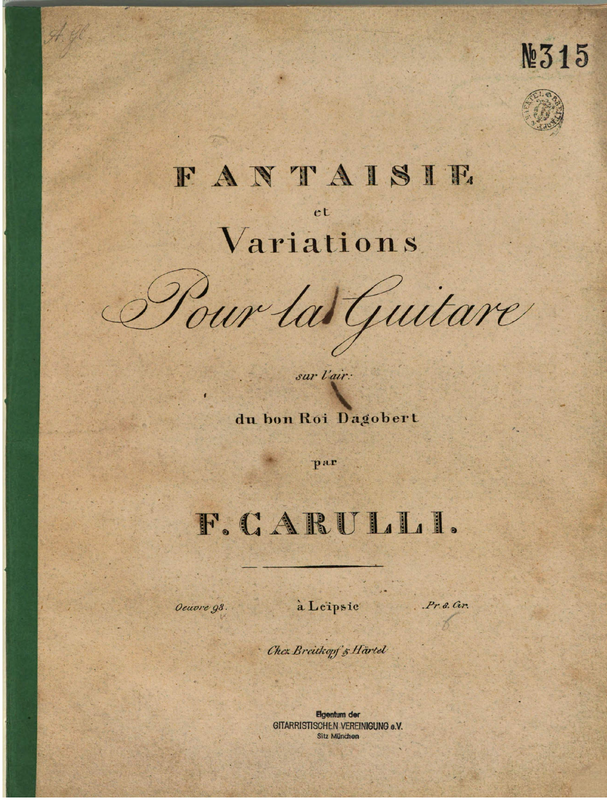 | Alternative. Title | Fantasie et Variations pour la Guitare sur l'air 'du bon Roi Dagobert' |