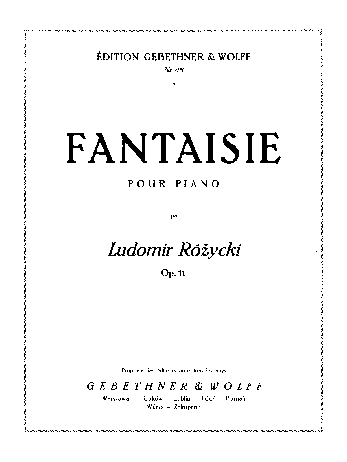 Misc. Notes Score undated; presumably published around same time as his Cello Sonata, Op. 10. Identical to the c1924 Gebethner and Wolff edition.