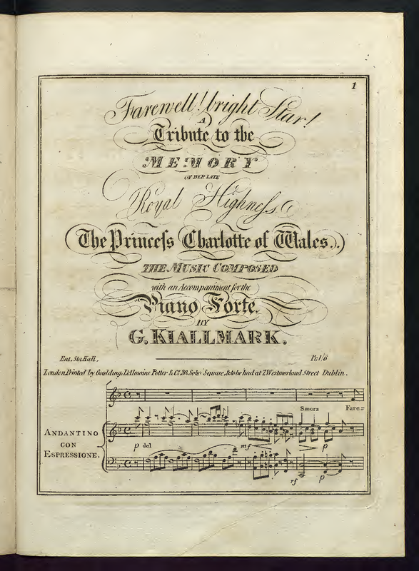 | Alternative. Title | Farewell! bright Star! A Tribute to the Memory of her late Royal Highness The Princess Charlotte of Wales |