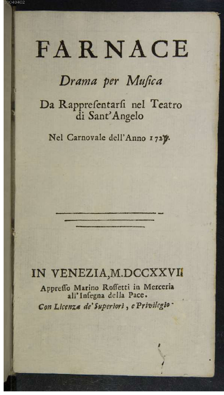 Alternative. Title Drama per musica da rappresentarsi nel Teatro di Sant'Angelo nel Carnovale dell'Anno 1726.