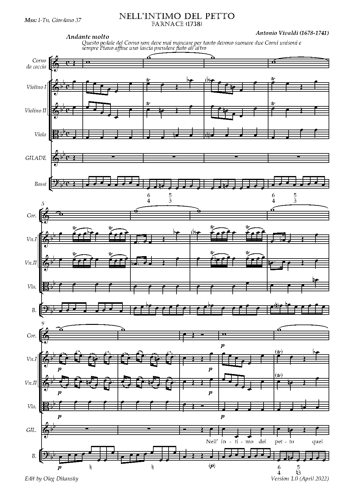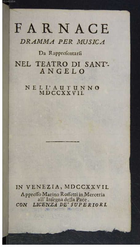 Misc. Notes From 1731 version for tenor (Pavia). For parts visit baroque-opera.com. Follow the score with audio on YouTube at https://youtu.be/hKGsddia2XU