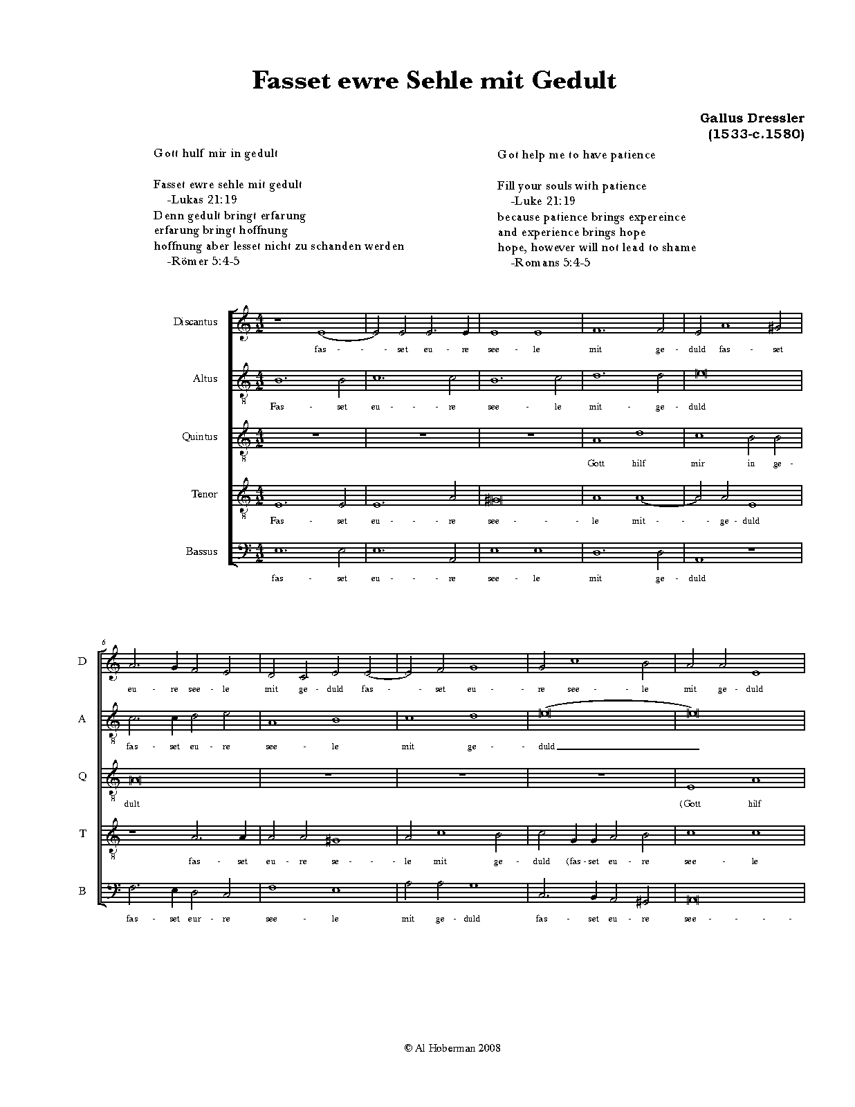 | Work Title | Fasset ewre Sehle mit Gedult |