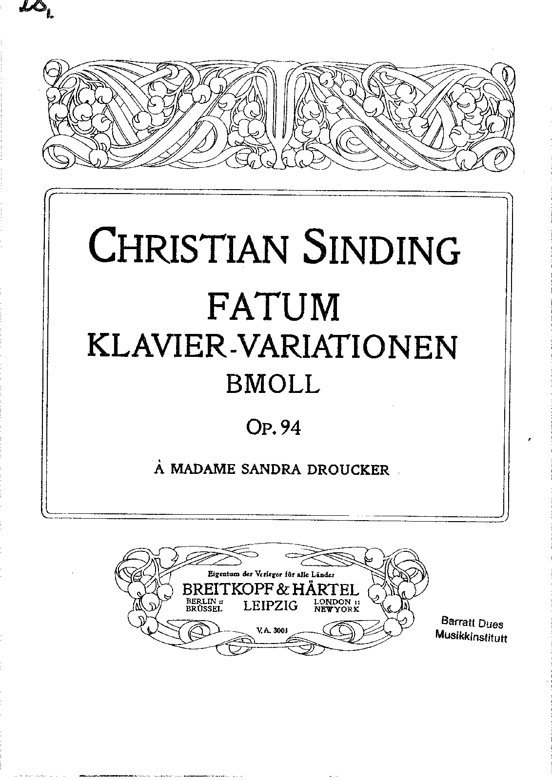Leipzig: Breitkopf & Härtel, 1909. Plate V.A. 3001.