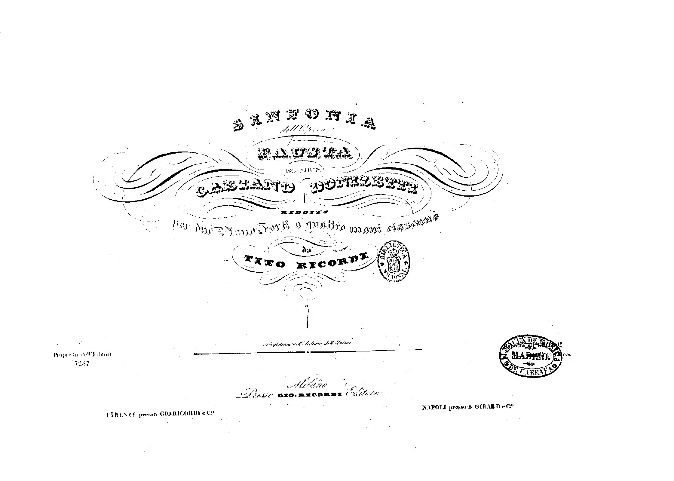 Milan: Ricordi, n.d.[1833]. Plate 7287.