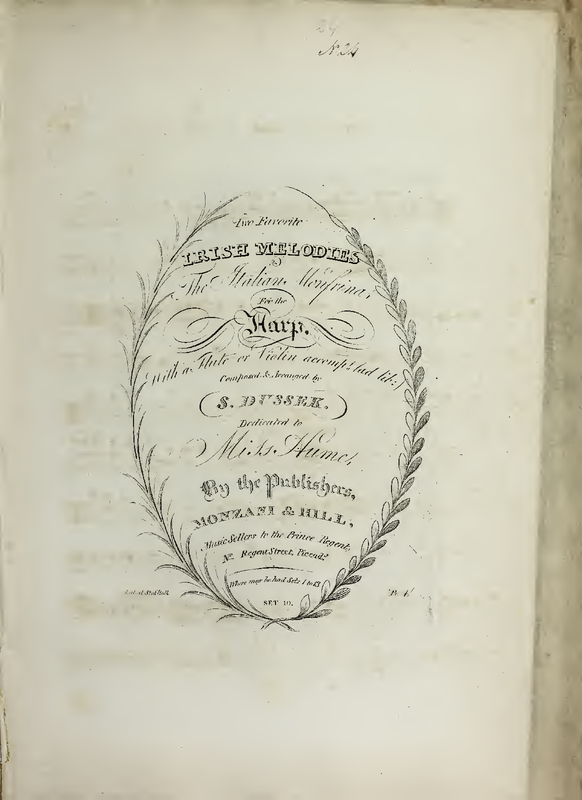 | Alternative. Title | Two favorite Irish melodies & the Italian Monfrina for the harp, with a flute or violin accompt. (ad lib.) Set 10 |
