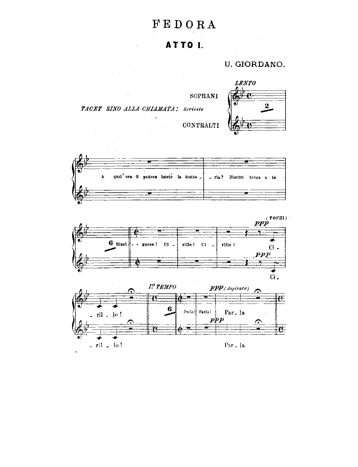 Count Loris Ipanov (tenor) Countess Olga Sukarev (soprano) De Siriex, a diplomat (baritone) Desirè, a servant (tenor) Dimitri, a servant (contralto) Grech, a police inspector (bass) Lorek, a surgeon (baritone) Cirillo, a coachman (baritone) Baron Rouvel (tenor) Borov, a doctor (baritone) Peasant Boy (contralto) Boleslao Lazinski, a pianist