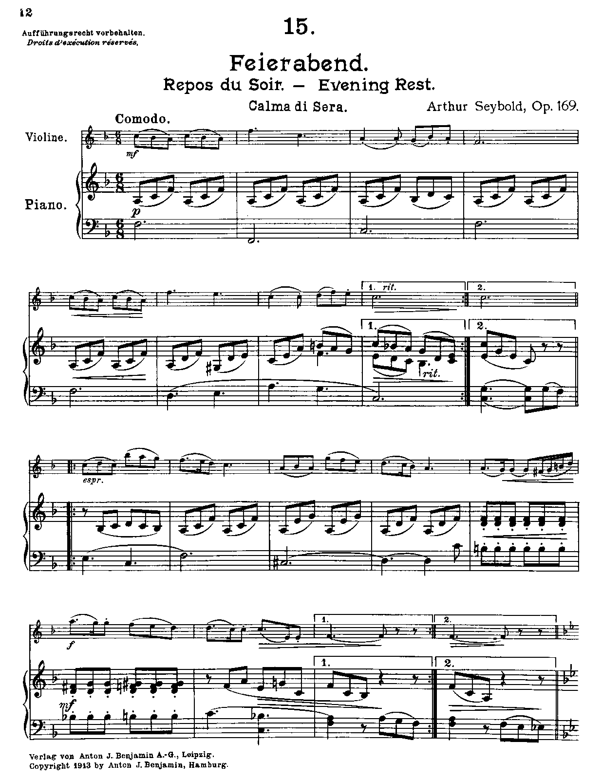 | Genre Categories | Pieces; For violin, piano; Scores featuring the violin; |