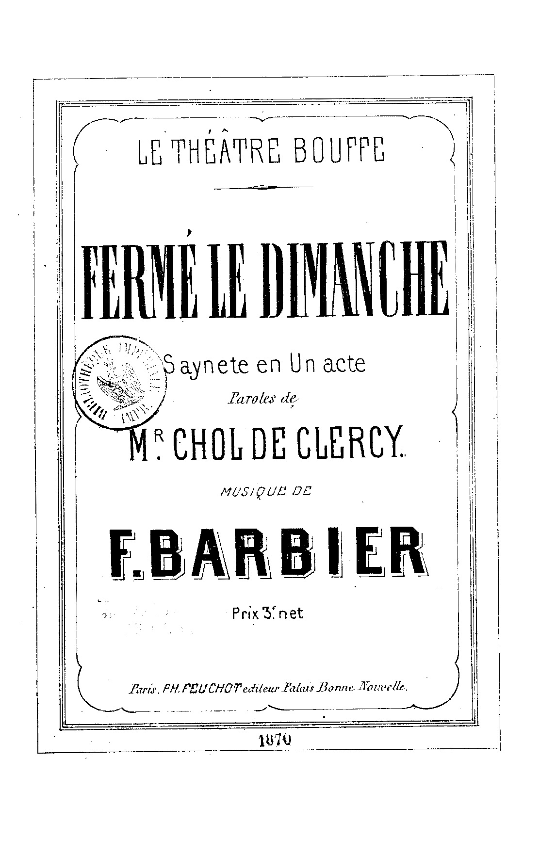 | Work Title | Fermé le dimanche |