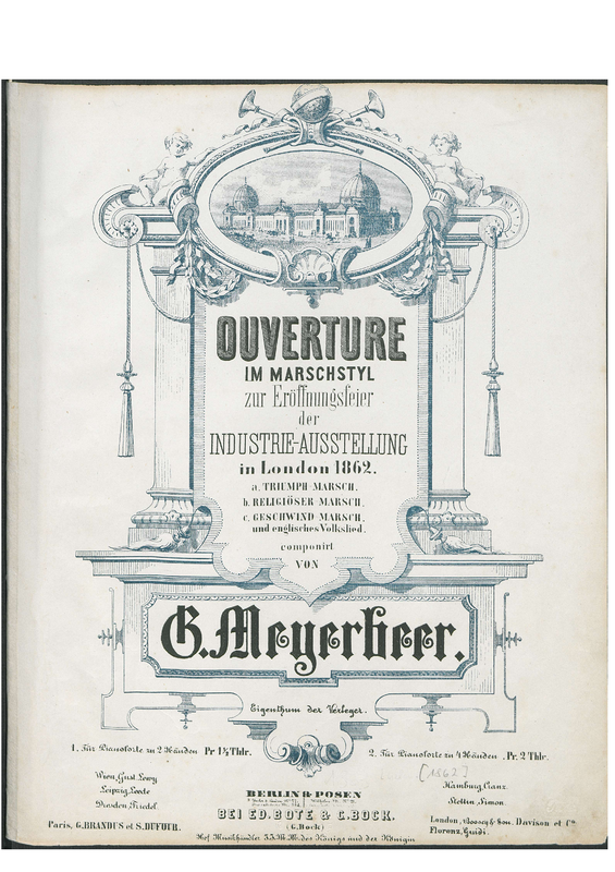 | Alternative. Title | Ouverture en forme de marche pour l'inauguration de l'Exposition universelle de Londres 1862 ; Triumph-, religiöser u. Geschwind-Marsch u. englisches Volkslied. |