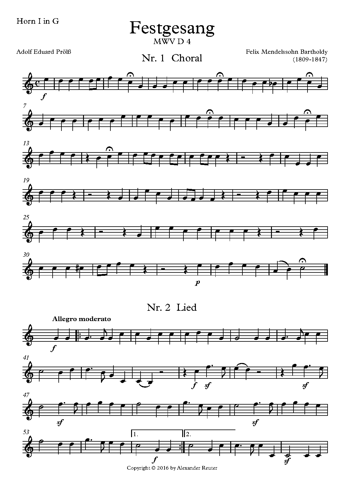 Alternative. Title Festgesang für Männerchor und Orchester, WoO 9