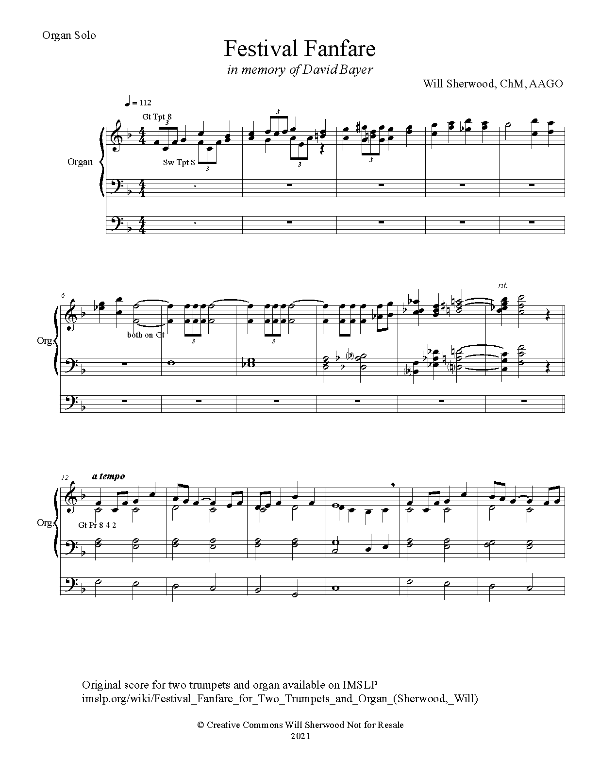 | Work Title | Festival Fanfare for Two Trumpets and Organ |