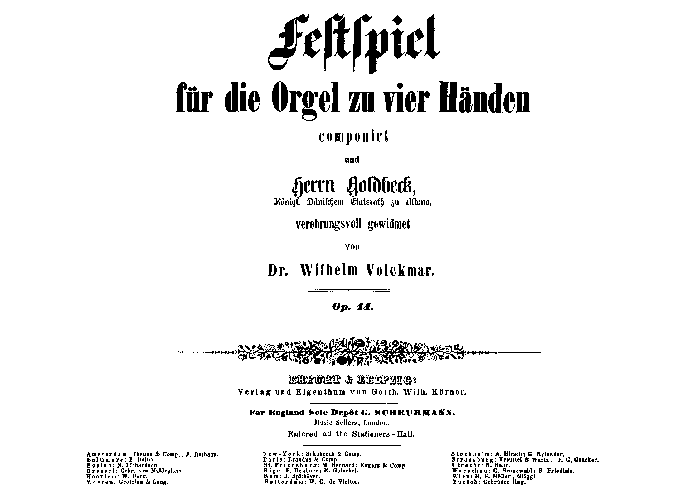| Alternative. Title | Festspiel für die Orgel zu vier Händen |