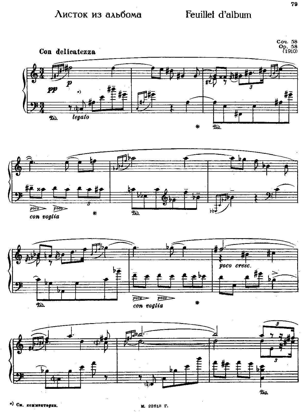 Publisher. Info. Moscow/Petrograd: Editions Russes de Musique, 1916. Plate Р.М.И. 98.