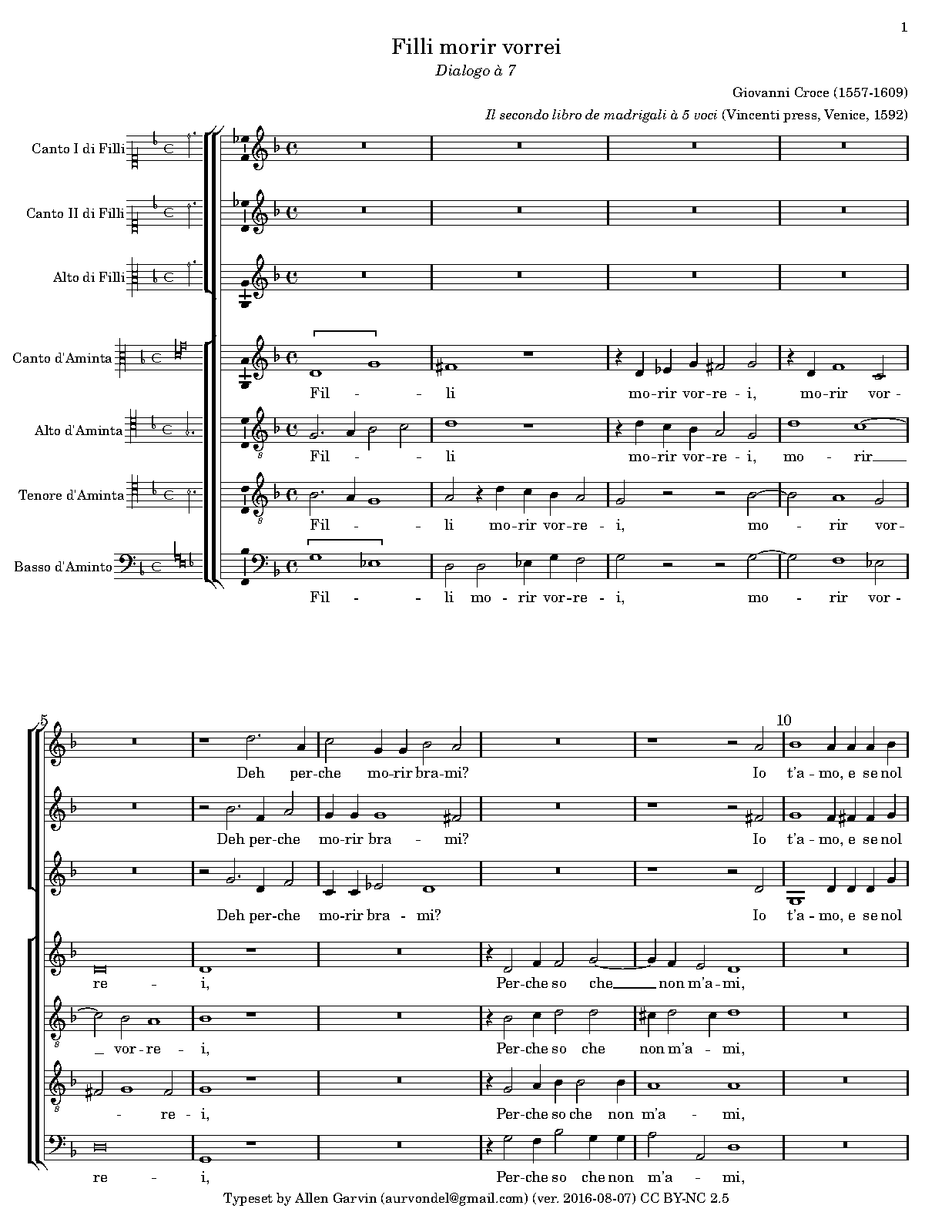 | First Publication | 1592 in Il secondo libro de madrigali a 5 voci' (No.20) |