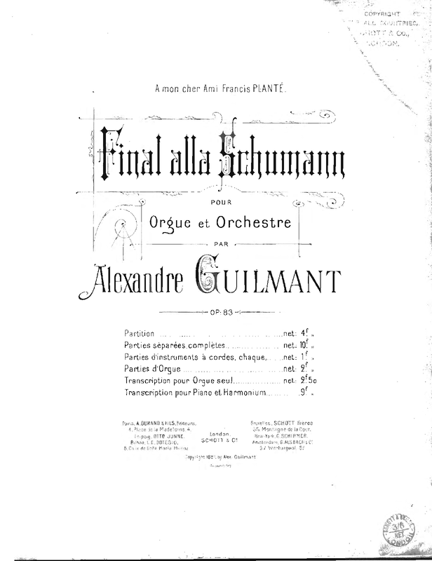 Alexandre Guilmant (Mainz: Schott), 1897. Plate A.G. 93ter.