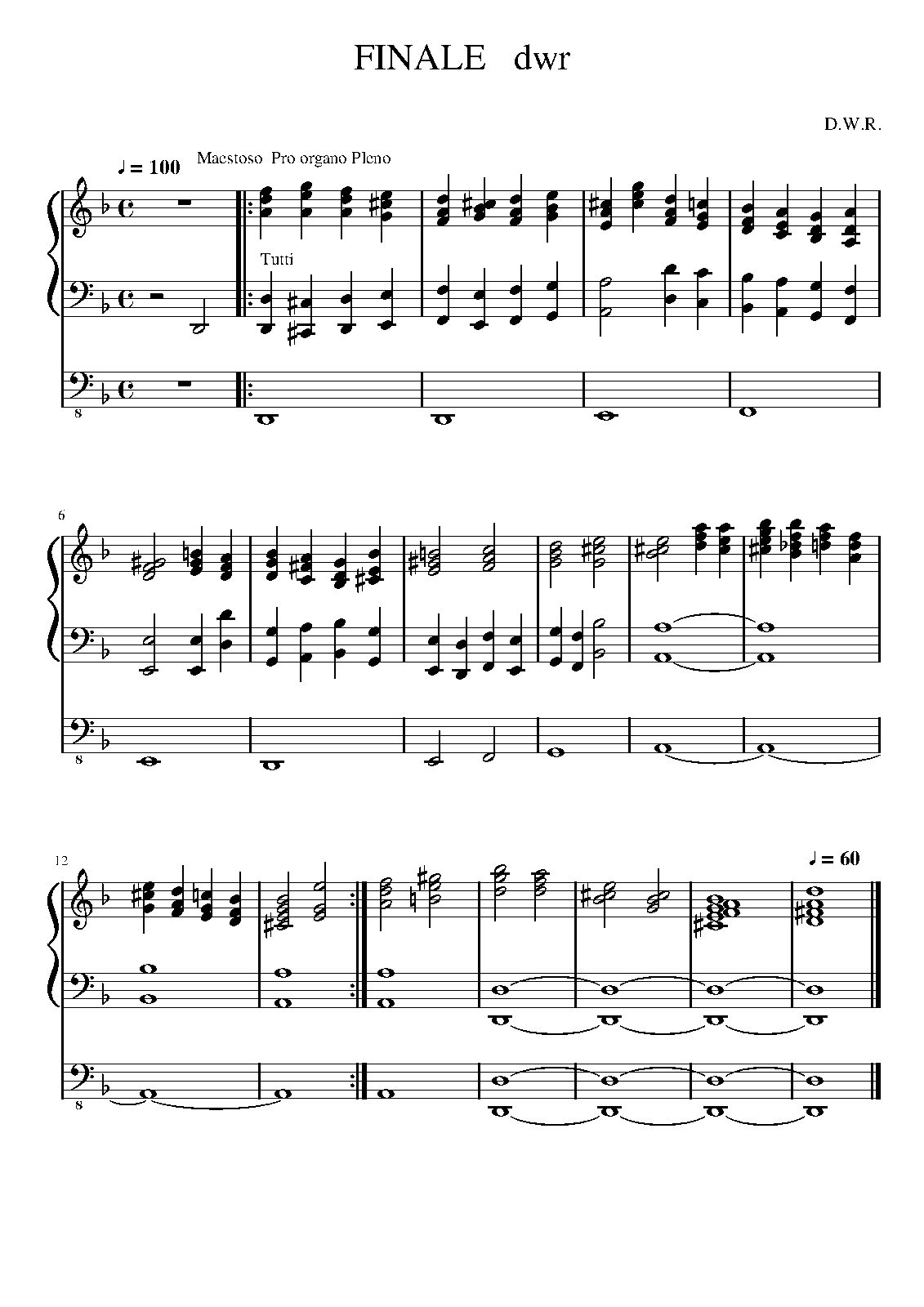 | Extra Information | Maestoso, Pro Organo Pleno |