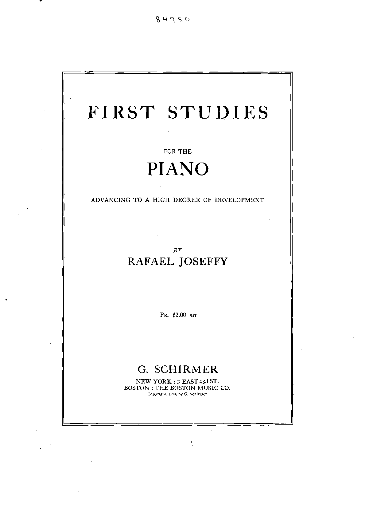 | Alternative. Title | First Studies for the Piano: Advancing to a High Degree of Development |