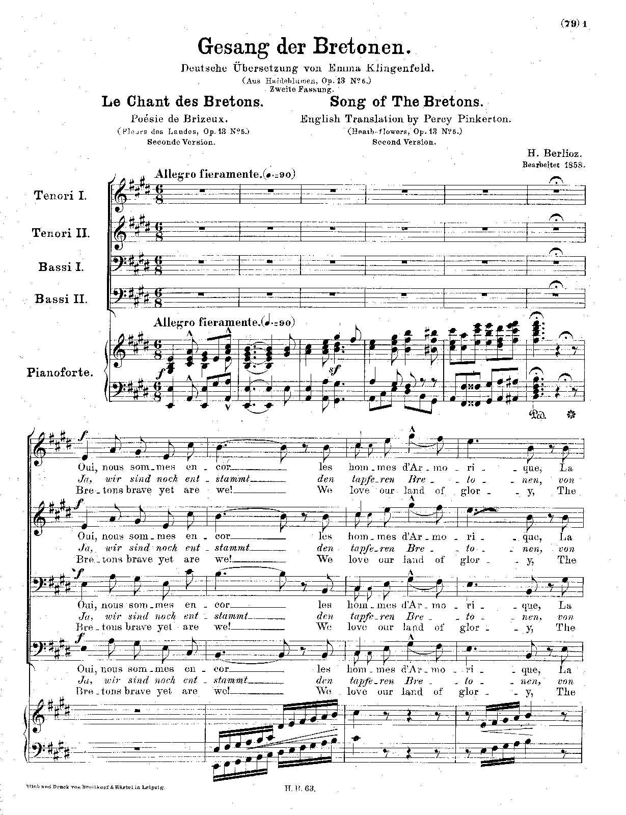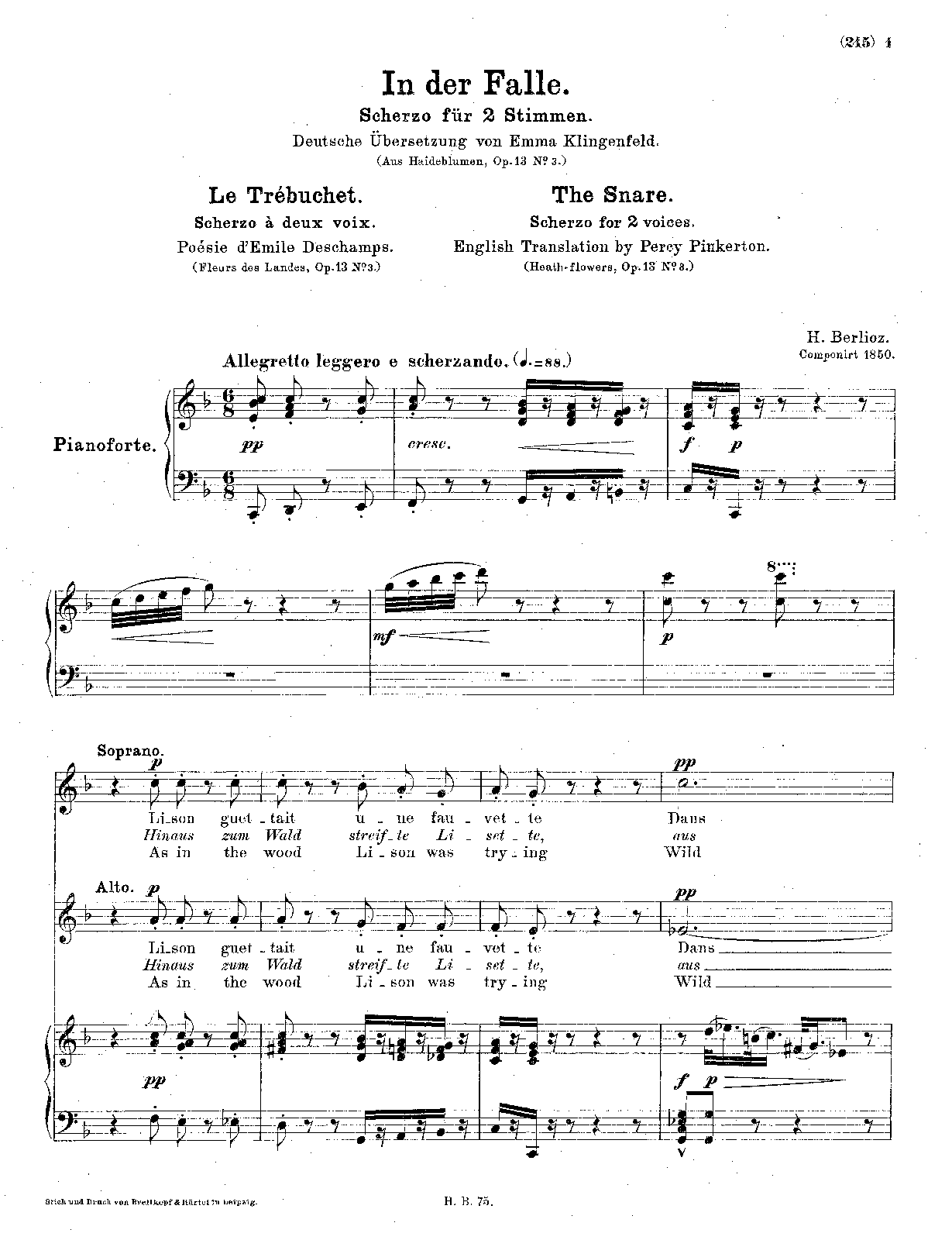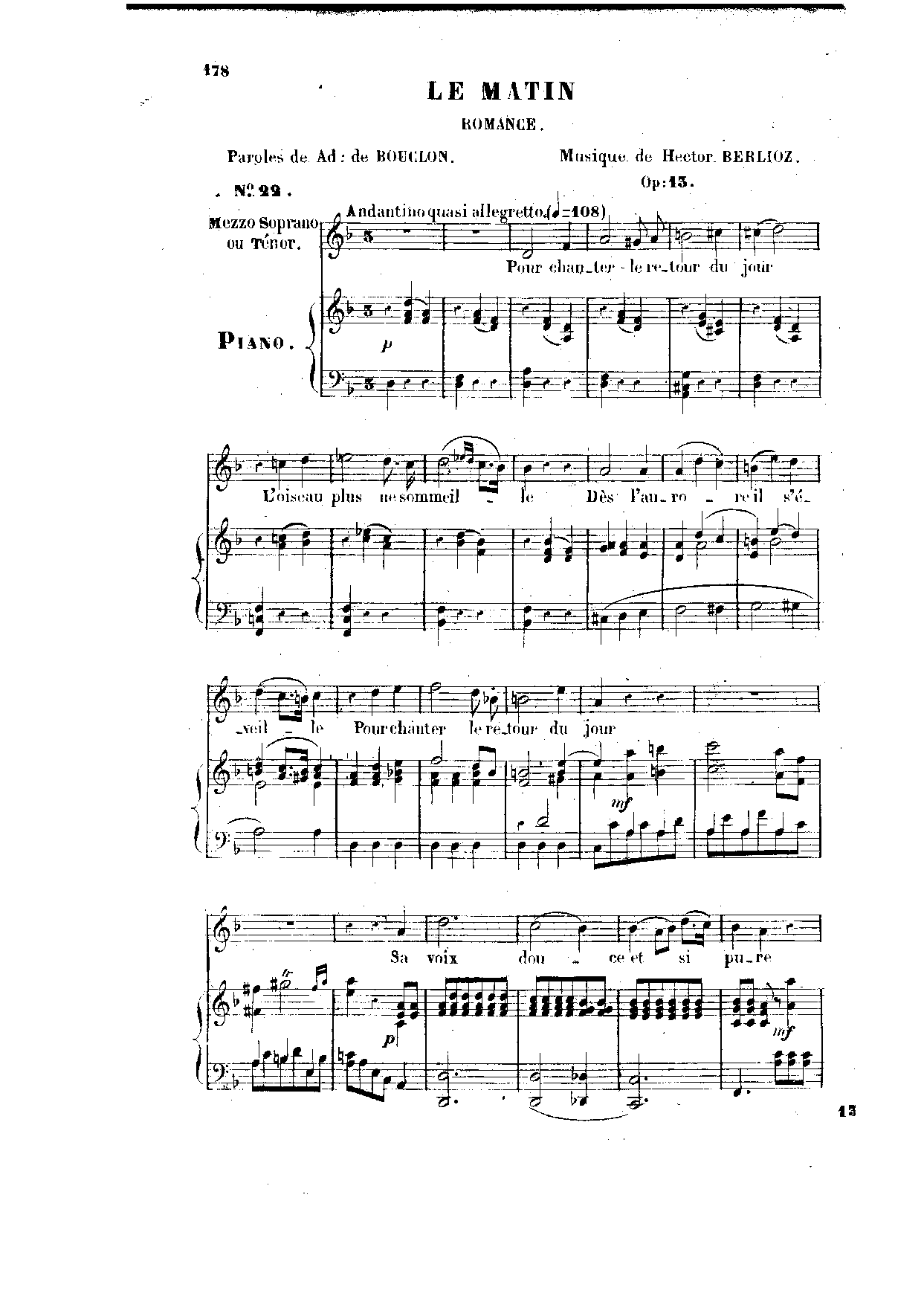 Libretti at The Hector Berlioz Website: Le matin, Petit oiseau, Le Trébuchet, Le jeune pâtre breton, Le chant des Bretons