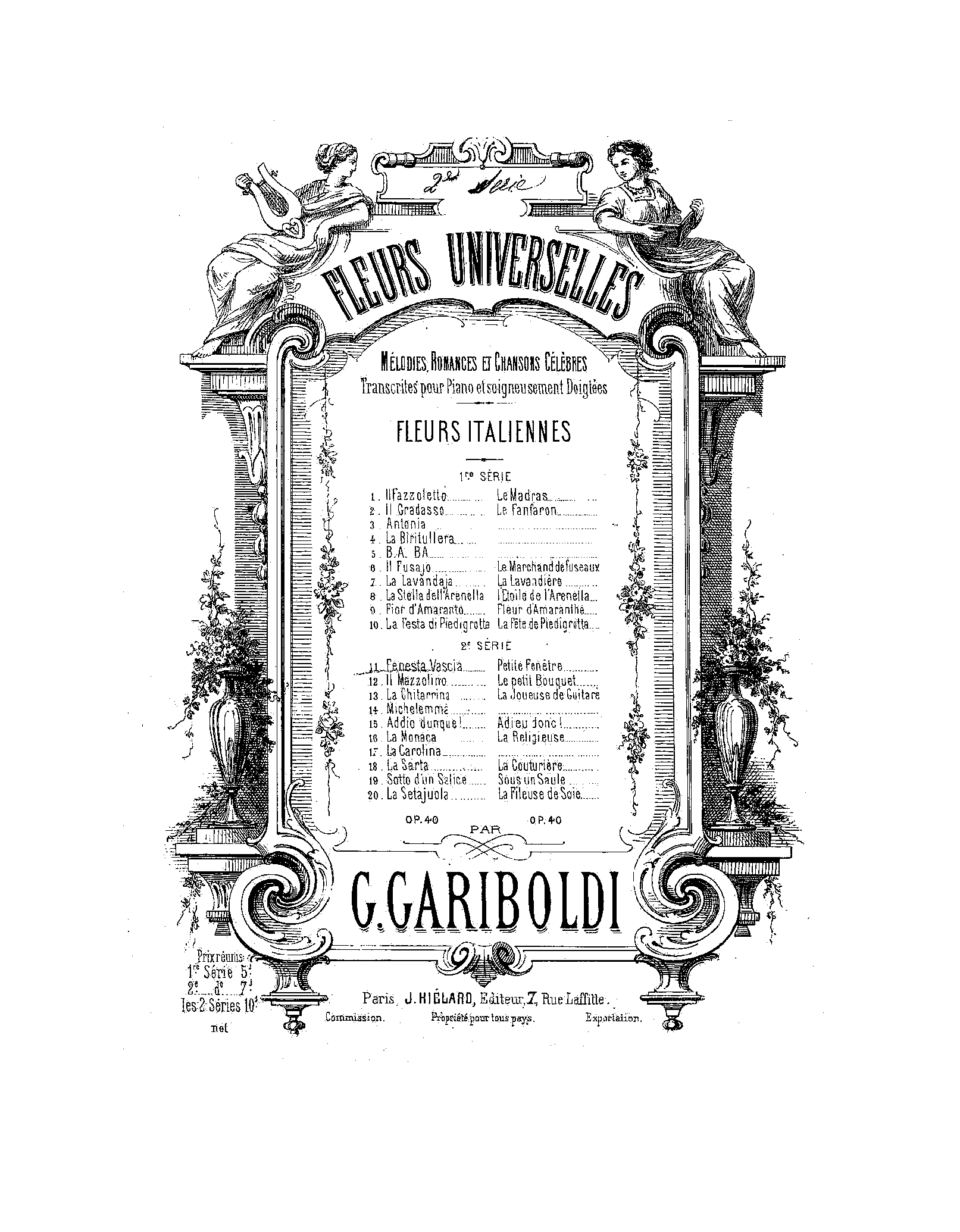 ⇒ 9 more: 12. Il mazzolino (Le petit bouquet) • 13. La chitarrina (La joueuse de guitare) • 14. Michelemmà • 15. Addio dunque! (Adieu donc!) • 16. La monaca (La religieuse) • 17. La Carolina • 18. La sarta (La couturière) • 19. Sotto d'un salice (Sous un saule) • 20. La setajuola (La fileuse de soie)