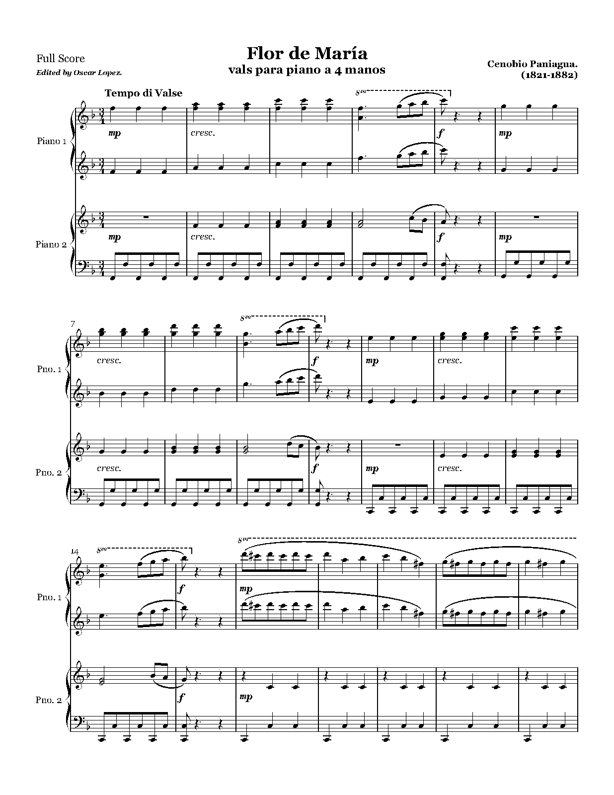 | Alternative. Title | Flor de María - Vals para piano a 4 manos |