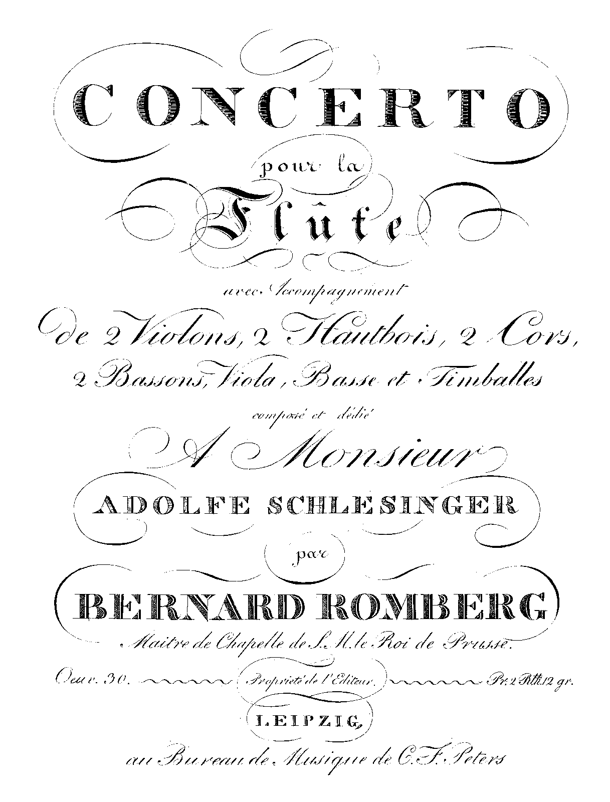 | Alternative. Title | Concerto pour la flûte avec accompagnement de 2 violons, 2 hautbois, 2 cors, 2 bassons, viola, basse et timballes |
