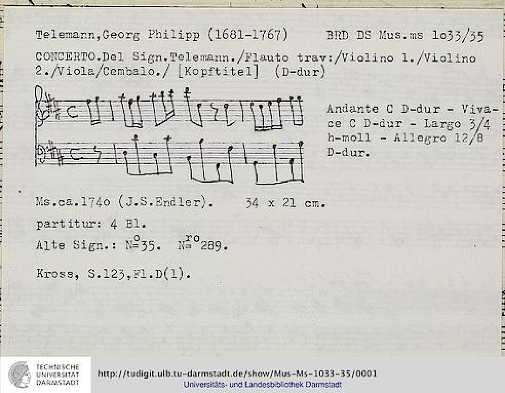 | Opus/Catalogue NumberOp./Cat. No. | TWV 51:D1 |