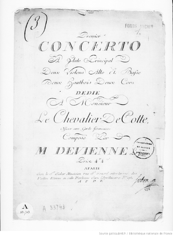 Extra Information According to the notes to the Naxos recording, a new flute concerto- possibly this one- by Devienne was performed in Paris 24 Dec. 1782.