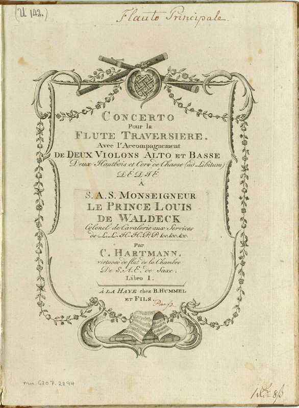 | Alternative. Title | Concerto pour la Flute Traversiere. Avec l'accompagnement de deux violons alto et basse deux hautbois et cors de chasse (ad libitum) |