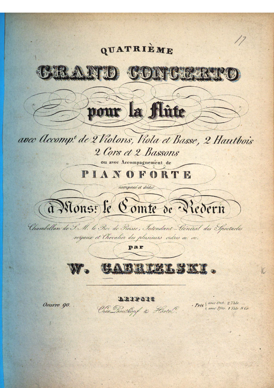 Quatrième grand Concerto pour la Flûte avec Accompt. de 2 Violons, Viola et Basse, 2 Hautbois 2 Cors et 2 Bassons ou avec Accompagnement de Pianoforte