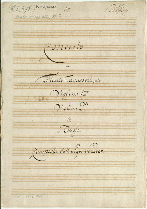 | Alternative. Title | Concerto â Flauto Traverso obligato/Violino imo/Violino 2do & Basso. Composta dall Sigr: Scherer [e] |