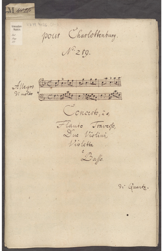| Alternative. Title | Concerto, â 5, Flauto Traverſo, Due Violini, Violetta e Baſſo. |