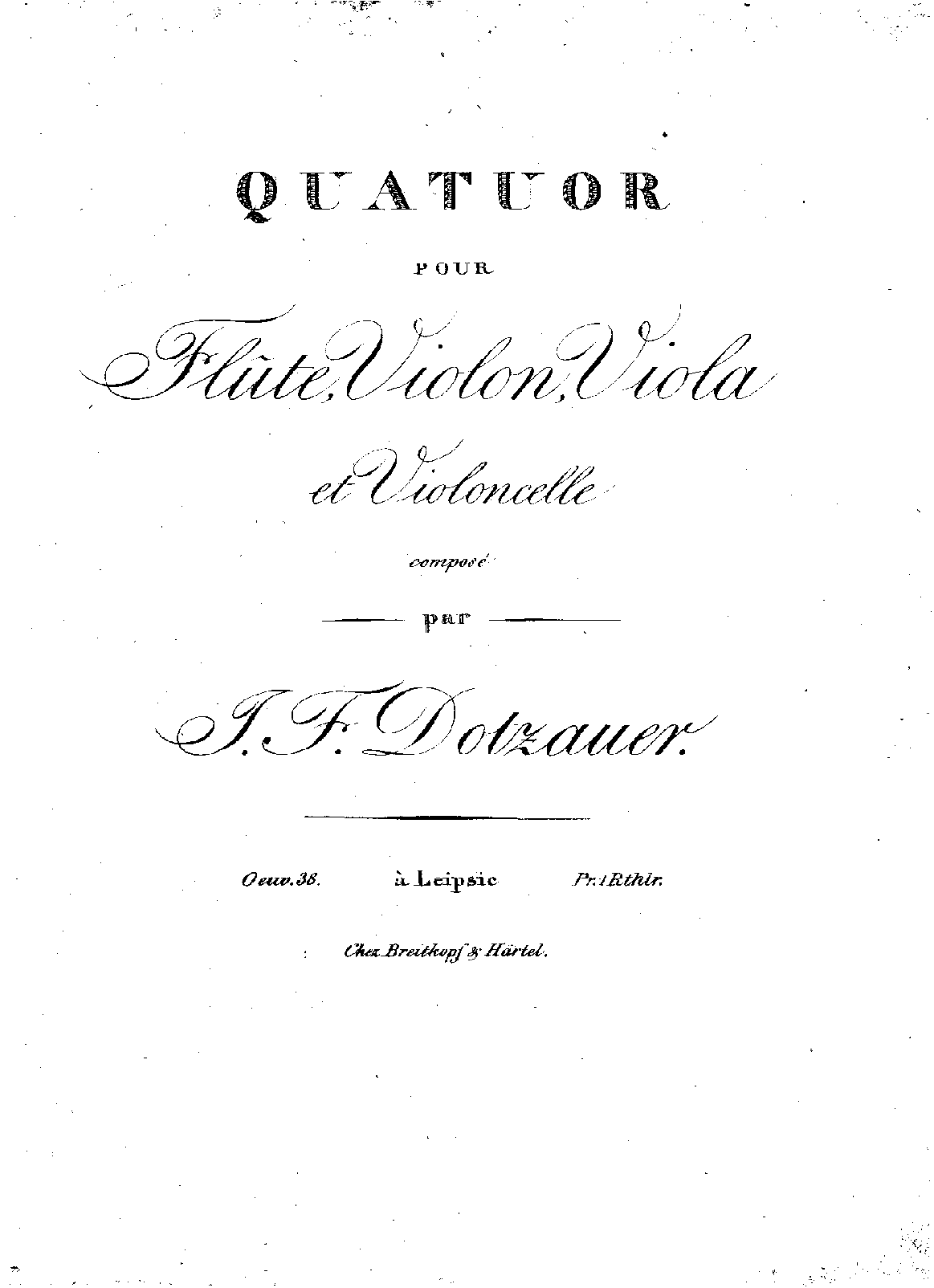 | Genre Categories | Quartets; For flute, violin, viola, cello; Scores featuring the flute; |