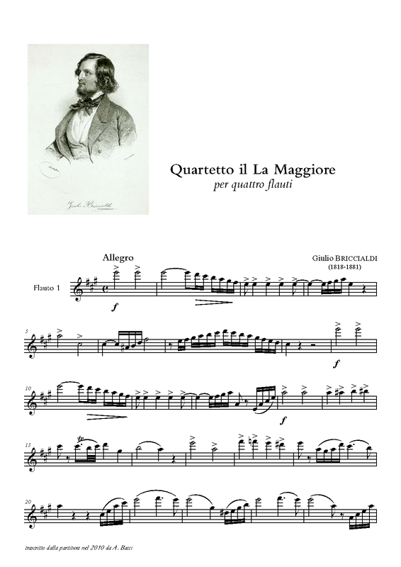 | Work Title | Quartetto in La Maggiore per 4 flauti |