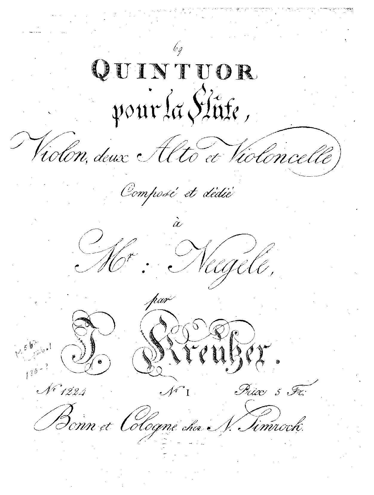 | Alternative. Title | Quintuor pour la Flute, Violon, 2 Alto et Violoncelle |