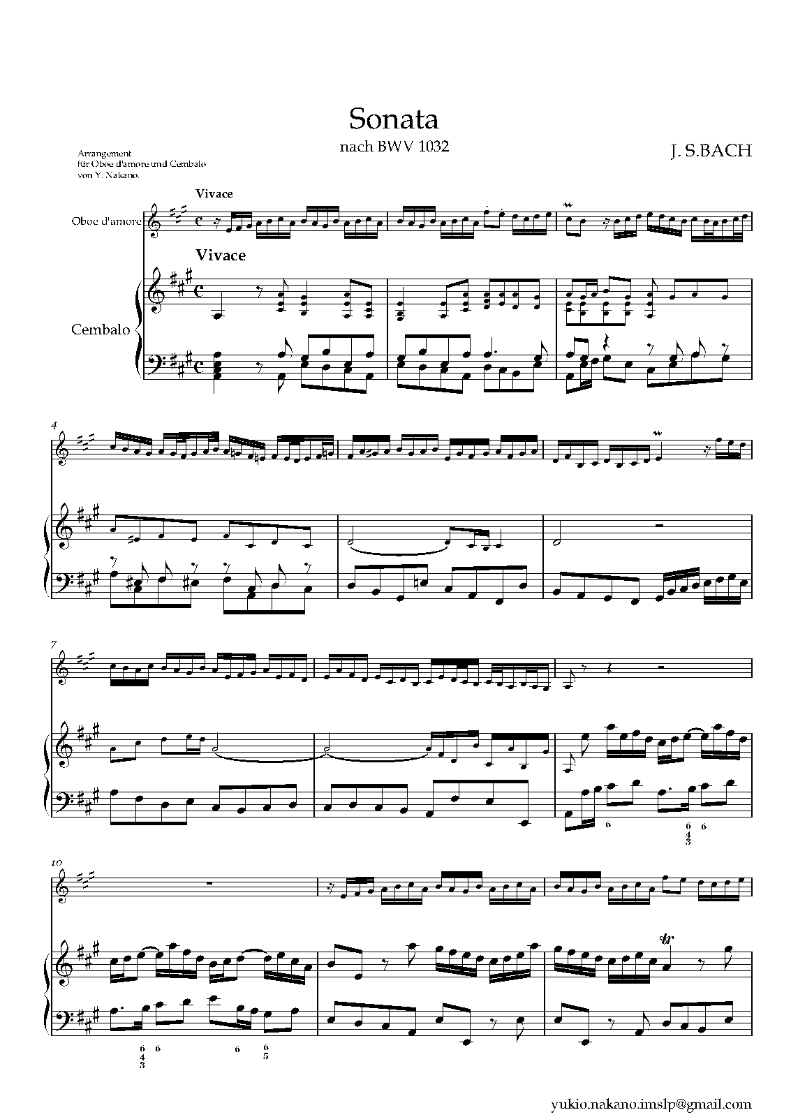 Misc. Notes This manuscript (D B Mus. ms. Bach P 612) contains 2 works of J. S. Bach, Concerto for 2 Harpsichords in C minor, BWV 1062, and Flute Sonata in A major, BWV 1032. The composer first wrote BWV 1062. The bottom 4 (or 3) staves on each page were left unused. Later, the composer started writing BWV 1032 on the unused staves. Up to the first 5 bars of the 2nd movement of BWV 1032 fit in the unused space of the score of BWV 1062. Then the composer continued on the new papers to complete the BWV 1032. Much later, somebody who owned this manuscript tried to separate the two works and cut some of the pages. As a result, the bottom part of the pages 17 through 28, i.e., latter half of the 1st movement of BWV 1032, were lost.