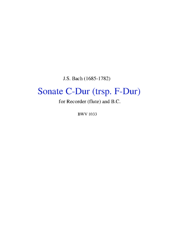 Name Translations Sonate pour flûte, BWV 1033; Sonata in C major for flute or recorder and basso continuo; Sonate i C-dur for fløyte eller blokkfløyte og basso continuo; Sonata I C-Dur BWV 1033